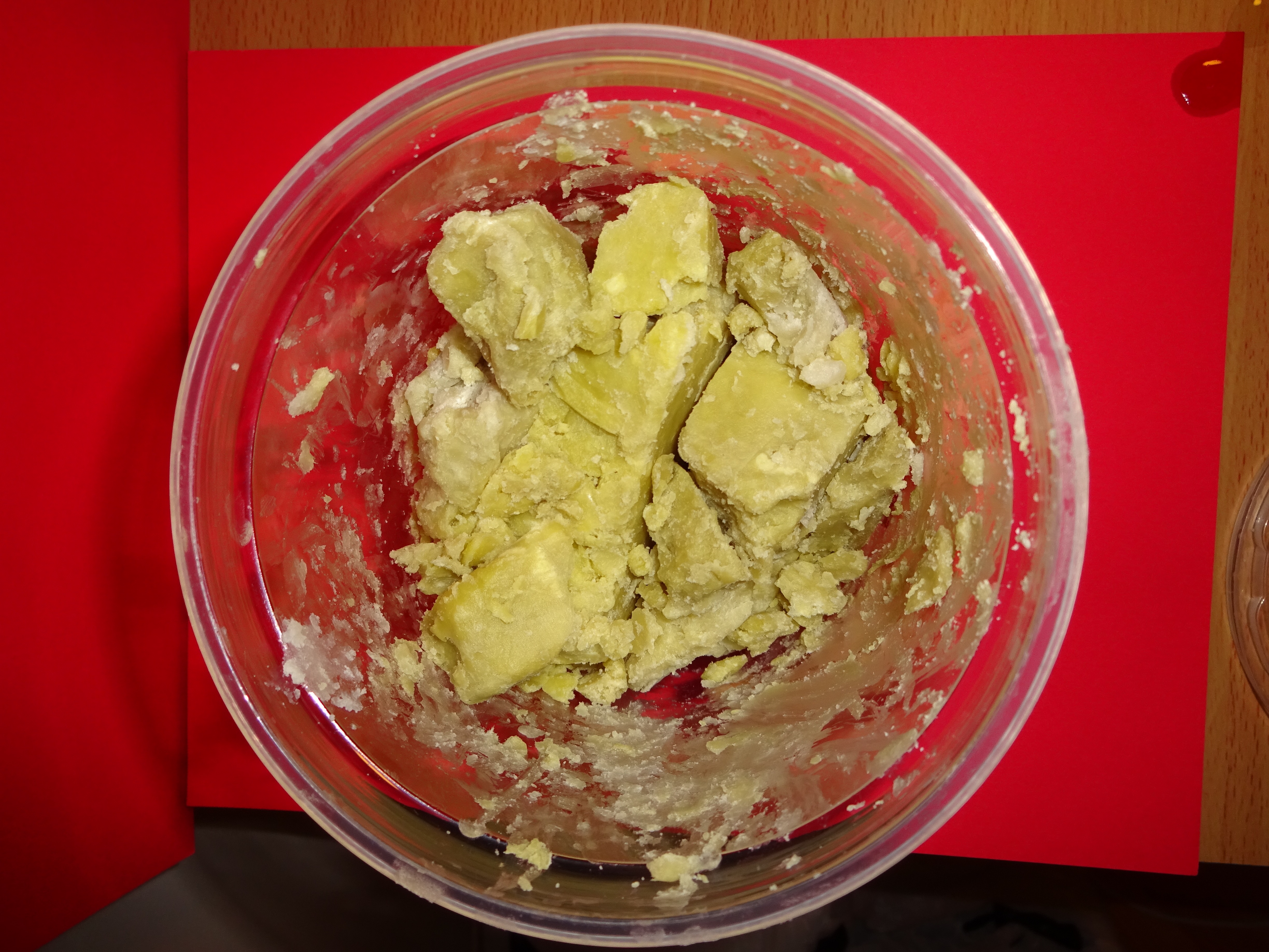 I replaced about 25% of the organic coconut oil with shea butter. I read a few blog posts that said a double boiler should be used to melt the shea butter. I channeled Sweet Brown because I certainly didn’t have time for that. I used the microwave and it worked!